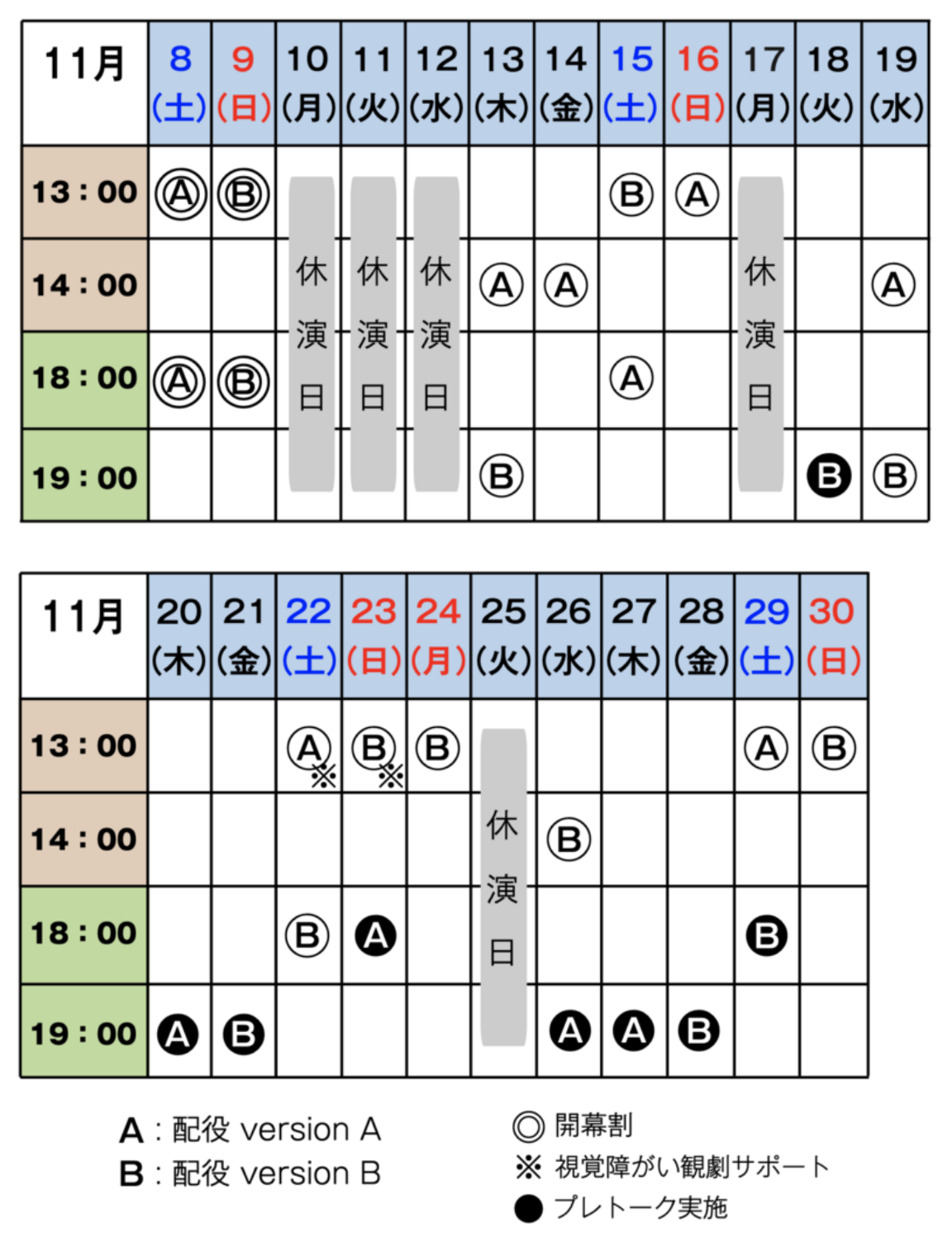 ■本公演は一部配役をWキャストによる2バージョンで実施いたします。以下のキャストは片方だけの出演となります。