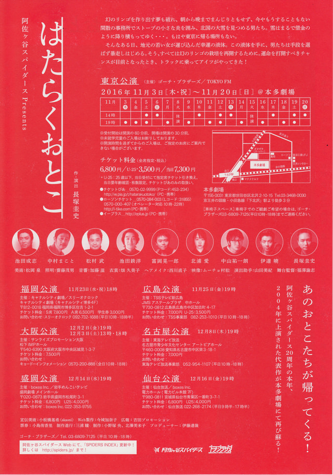 幻のリンゴを作り出す夢も破れ、朝から晩までまんじりともせず、今やもうすることもない閑散の事務所でストーブの小さな炎を囲み、北国の大雪を見つめる男たち。雪はまるで借金のように降り積もってゆく・・・。もはや東京に帰る場所もない。